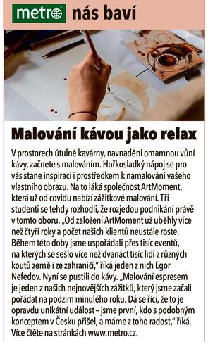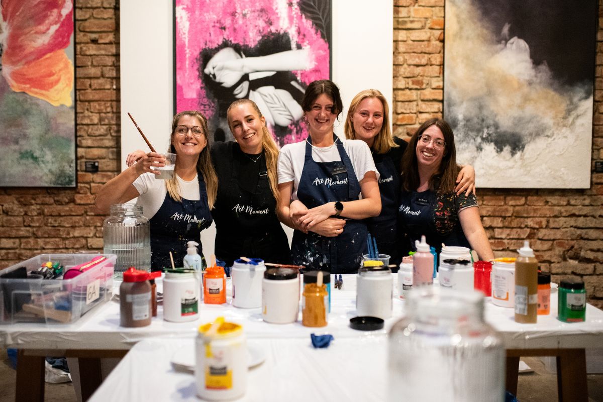 V ArtMoment jsme sehraná parta nadšenců do umění, kteří se rozhodli, že svou kreativitou a chutí do nových zážitků nakazí i vás! Během tří hodin dostanete možnost se na našich večerech vžít do role umělce a prožít nezapomenutelný večer v atmosféře elegantních a stylových restaurací. Naším cílem je, abyste se cítili na našich večerech výjimečně a třeba si i dokázali, že zvládnete něco, na co byste dřív ani nepomysleli. No a taky abyste si kromě obrazu odnesli i široké úsměvy na tváři a spoustu krásných vzpomínek!